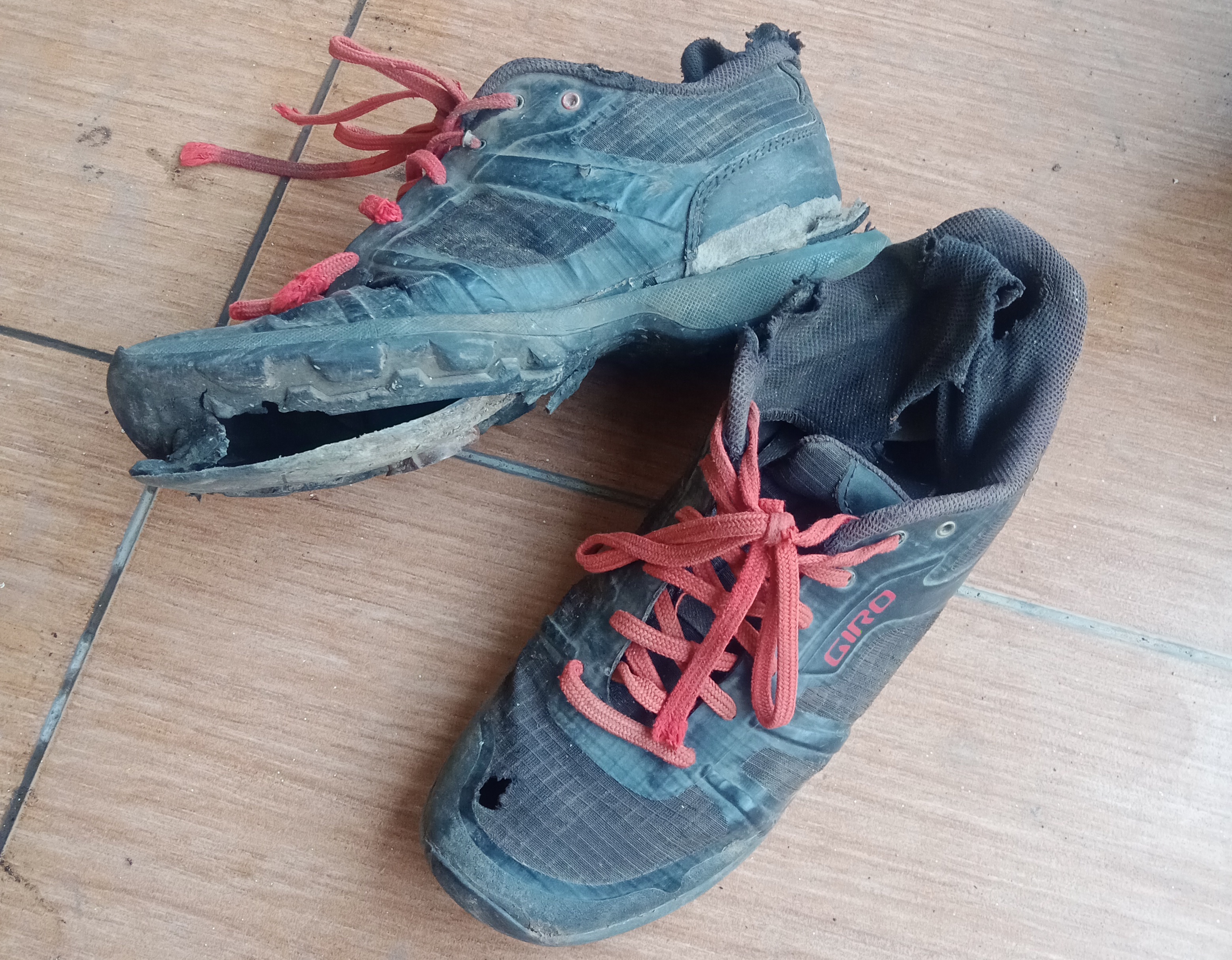 I had clip in bike shoes and I’m not sure they were necessary. Most other bikepackers just had good walking shoes. After 8 months these got binned in Bali, as they were in pieces.