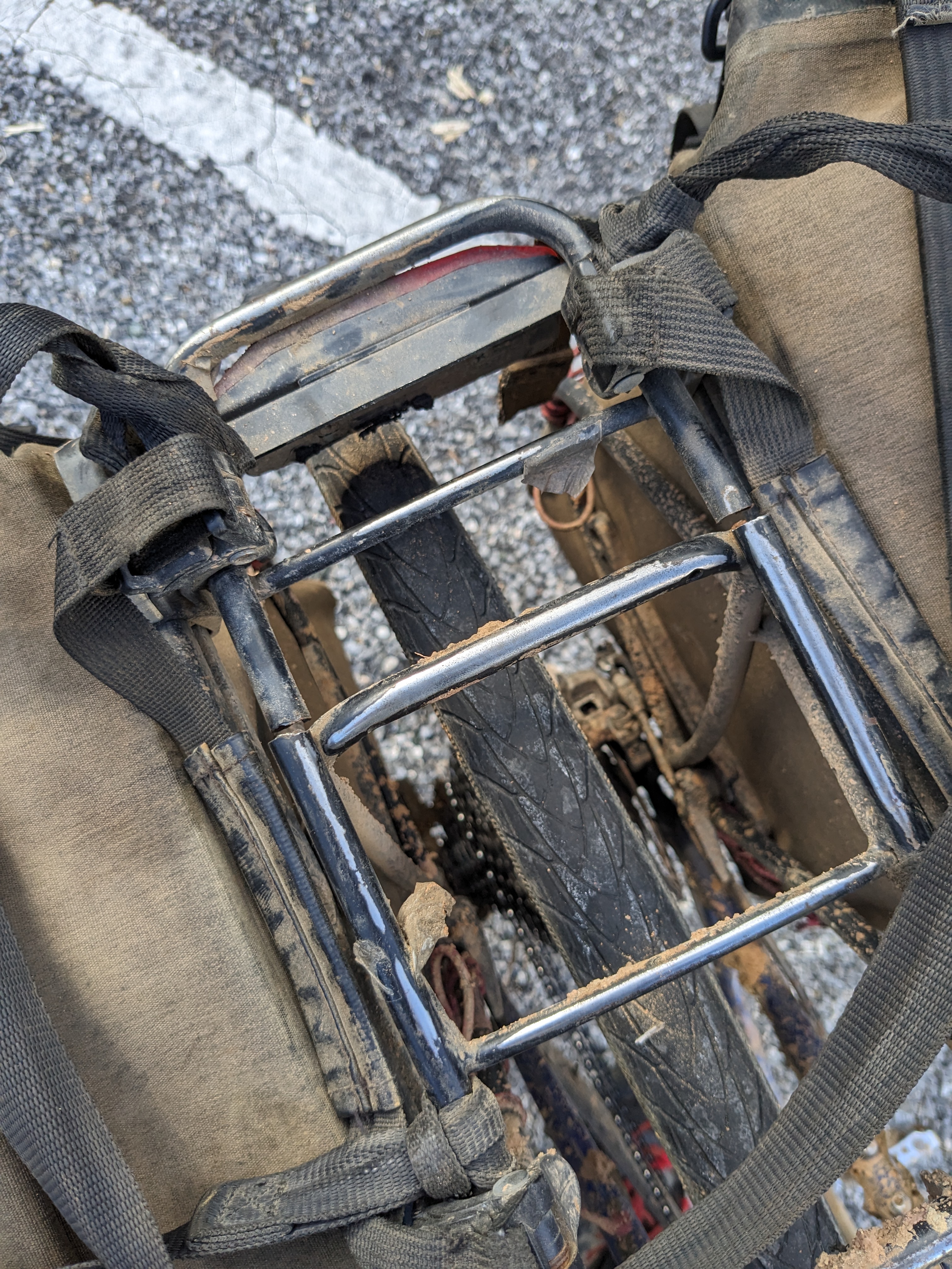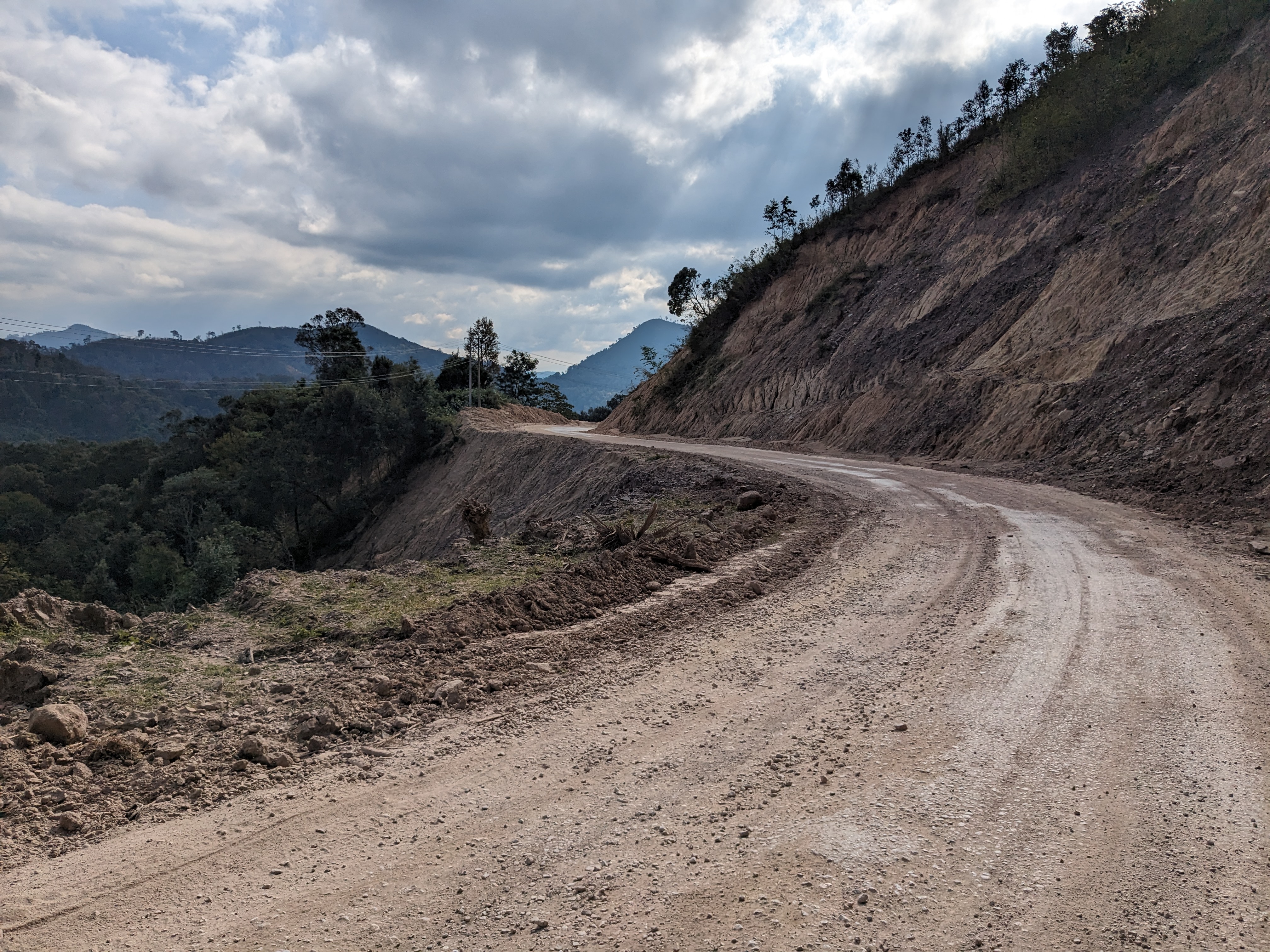 Next, the road turned from mud to dust, throwing up a cloud of dust anytime a vehicle would pass. A local on a motorbike stopped to give me a face mask to wear however, both me and my bike still became caked in a layer of dust.