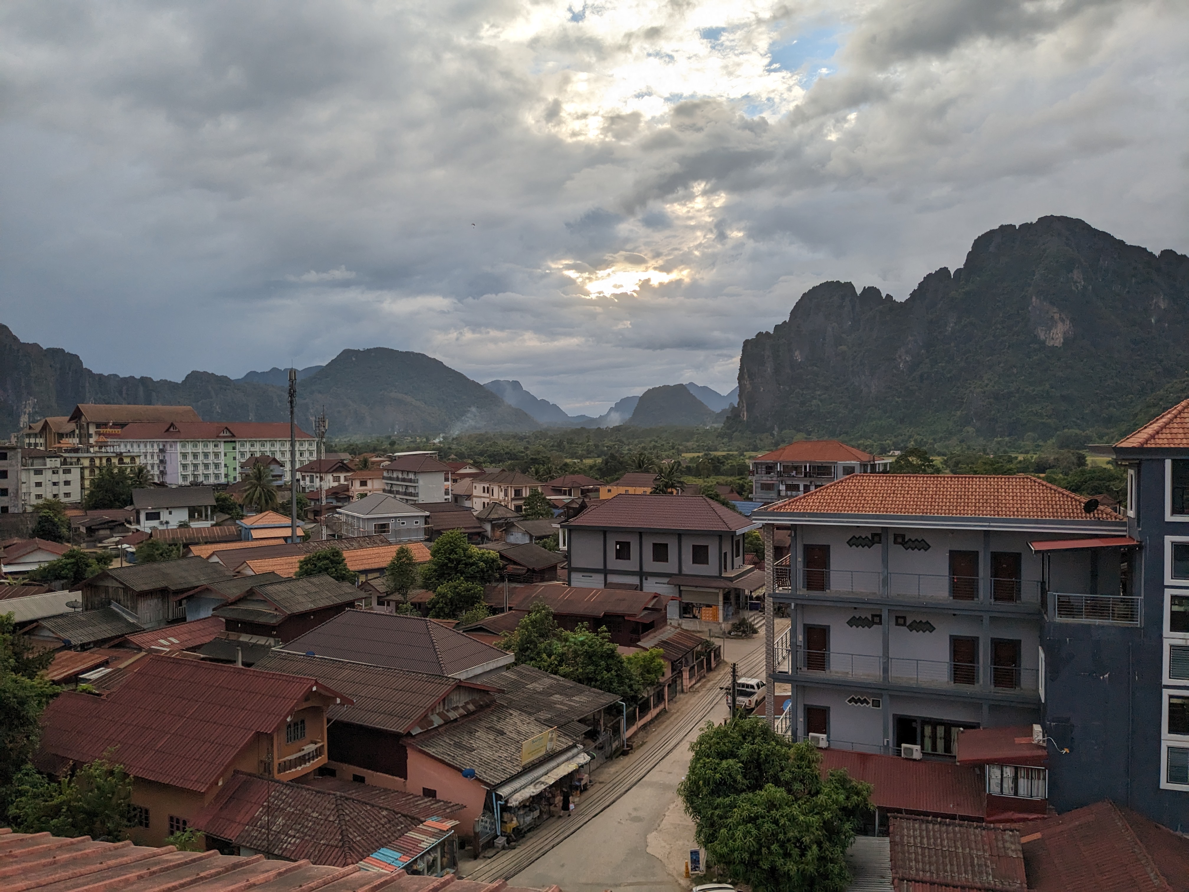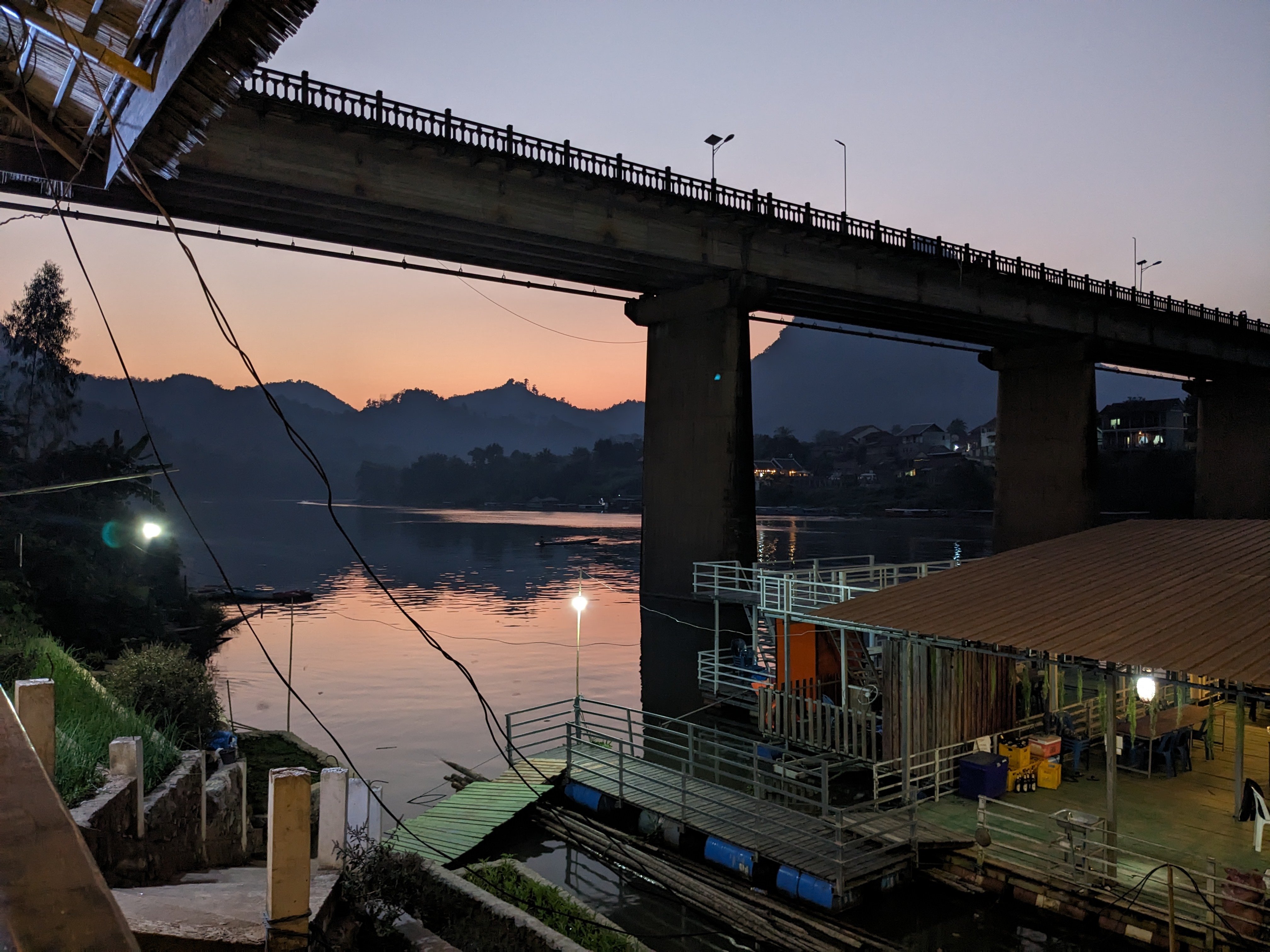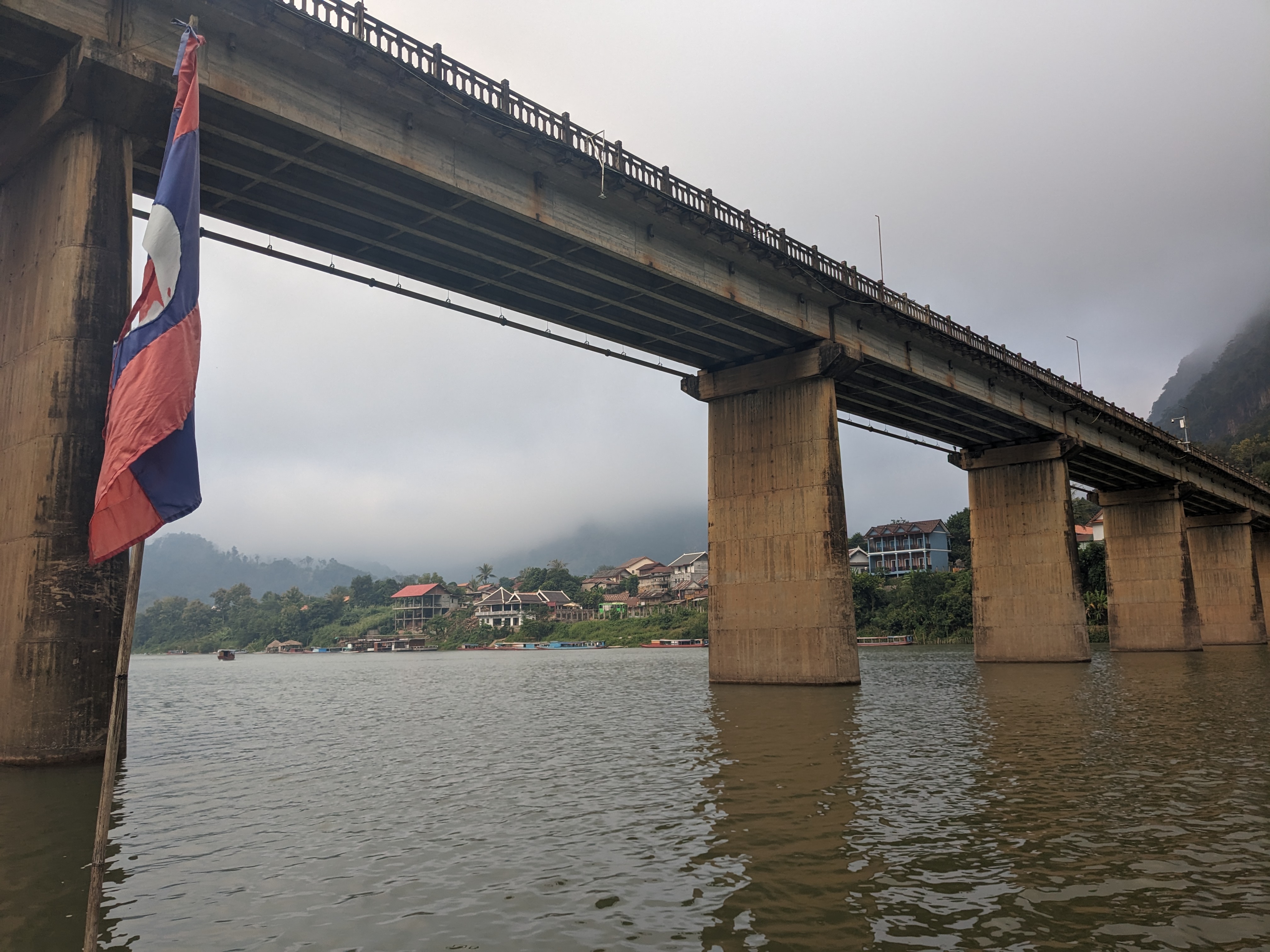 Nong Khiaw, a town nestled by the river amid mountains, marked the final town I’d spend a night of the Laotian leg. A bed at a riverside hostel, complete with a breakfast buffet, offered a serene pause in my journey. I made sure to take advantage of the breakfast, eating as much egg fried rice as could before the road beckoned.