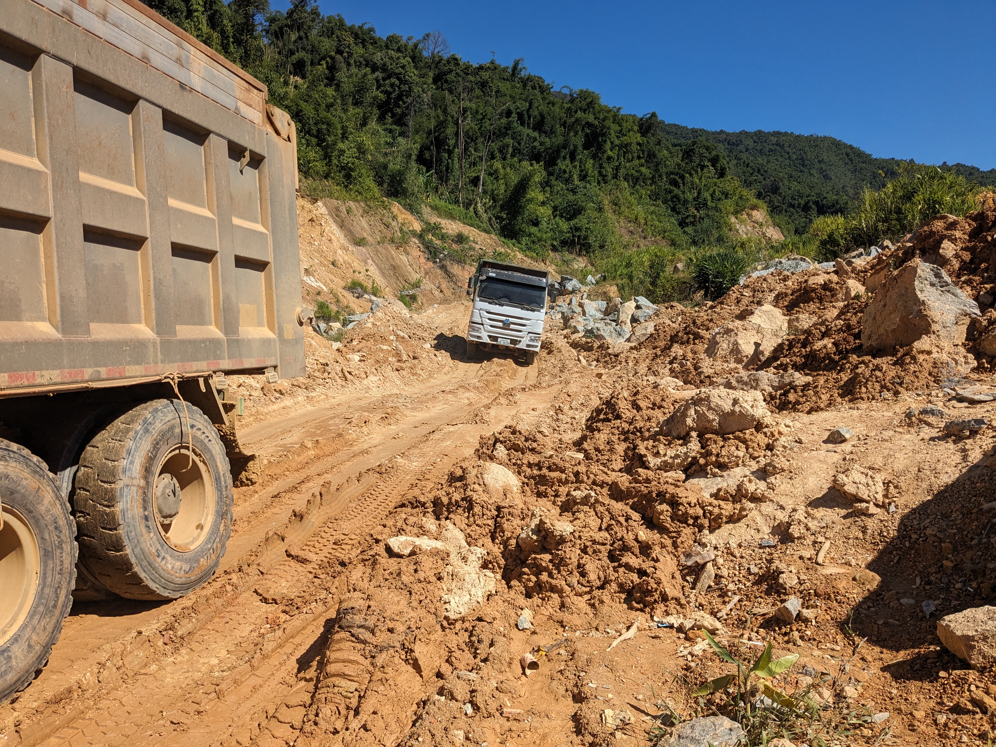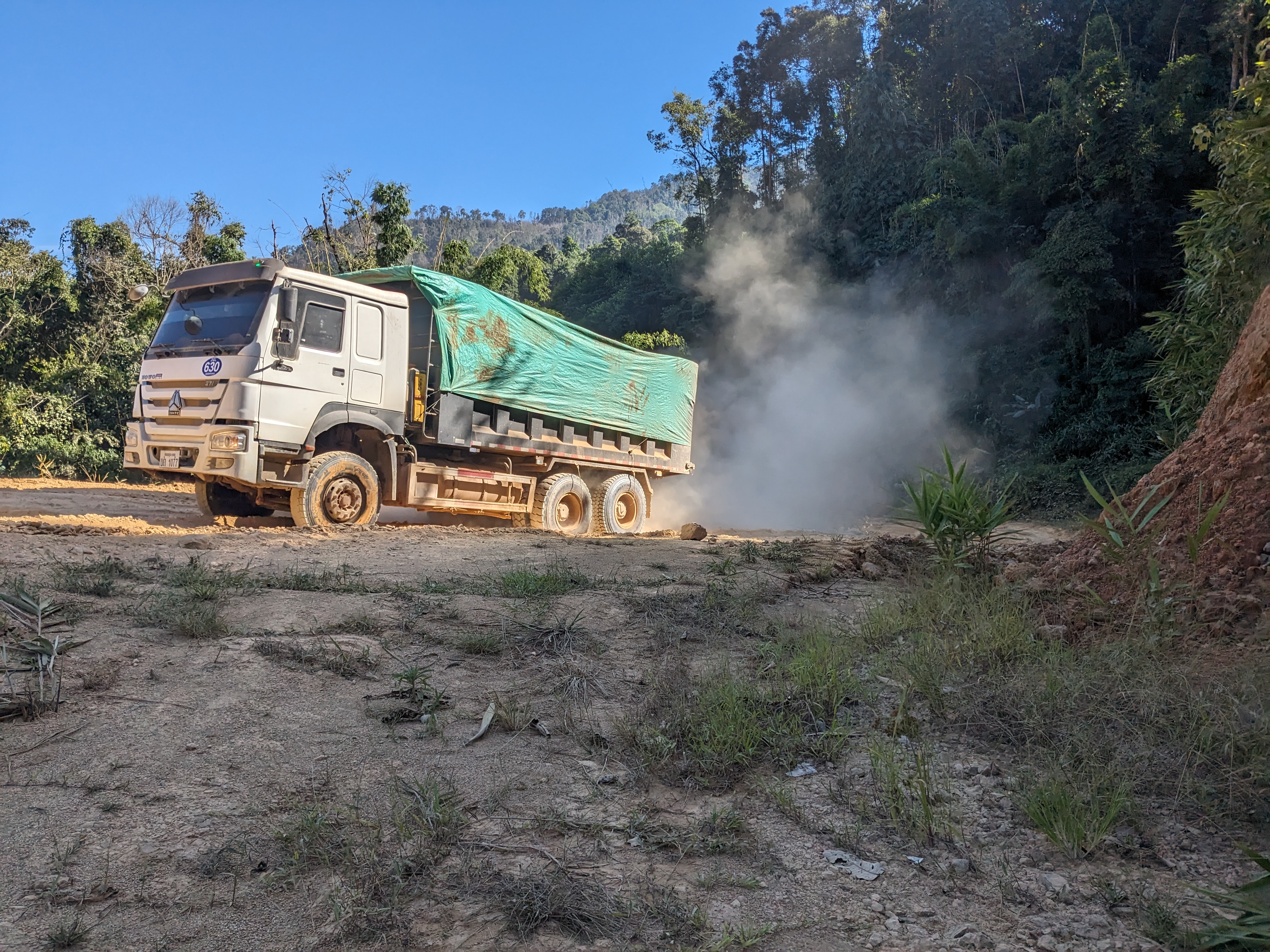 Leaving Vang Vieng, I decided to chart the direct course towards Phonsavan, opting for small roads. The journey, however, became an unexpected dance with trucks thundering up and down this unpaved track. The night unfolded with a fantastic camping spot overlooking the valley, but the trucks continued through the night waking me up a few times.