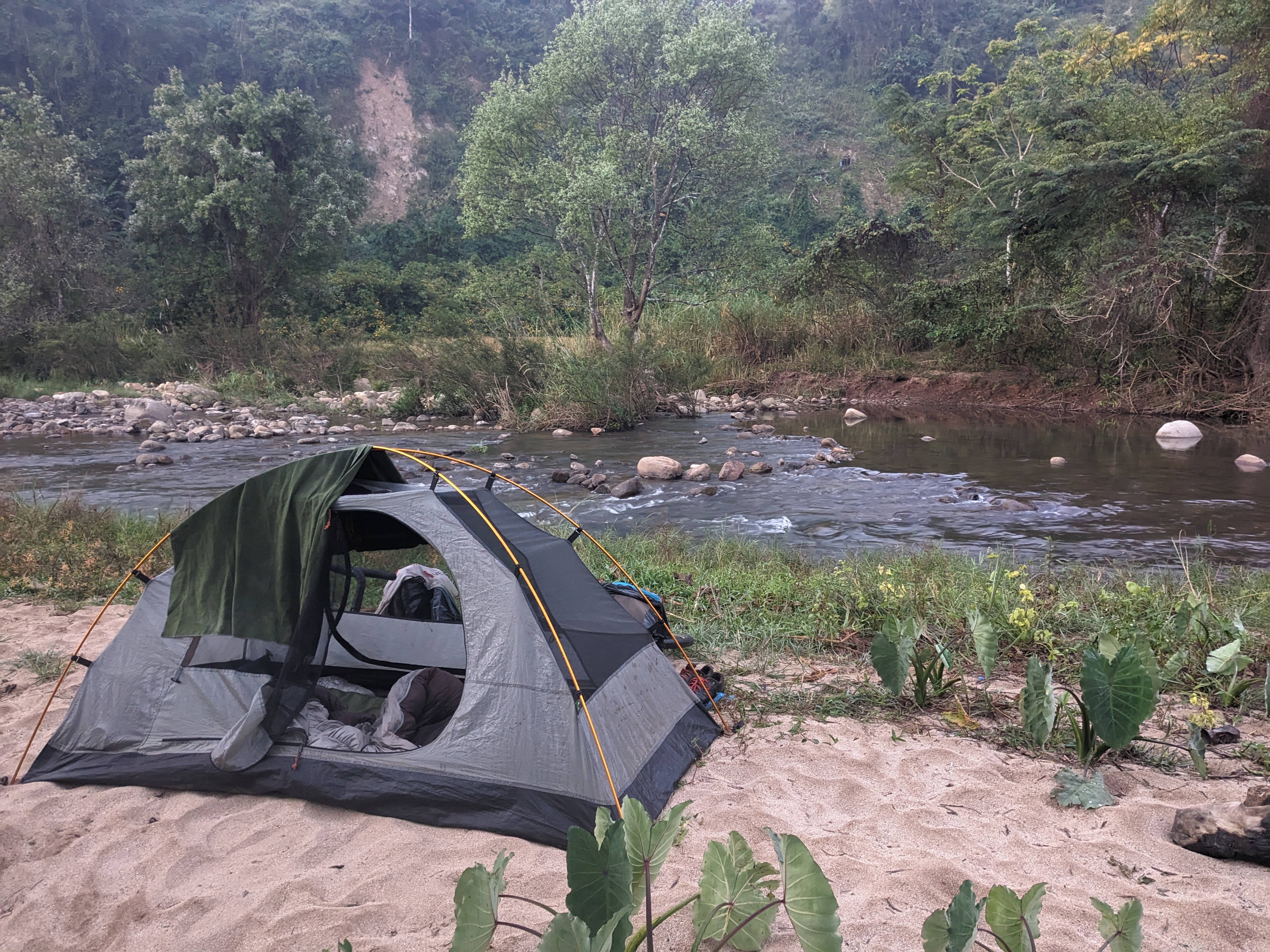 In the morning, a picturesque mist veiled the valley, a sight that would become a recurring view in Laos. Despite the breathtaking spectacle, cycling through the mist proved tricky with limited visibility and poorly maintained roads.