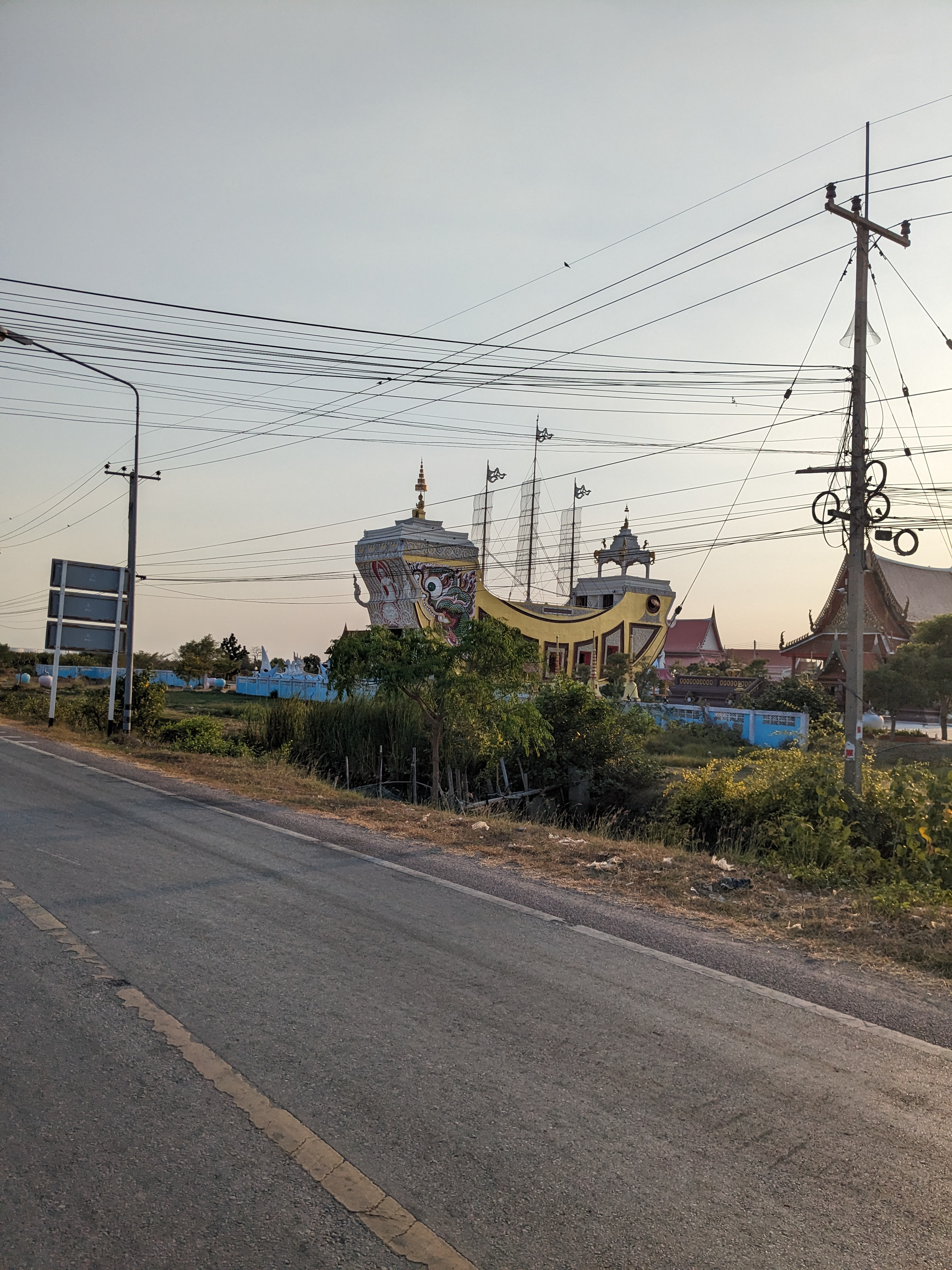 Deciding on my next destination, I had the choice of riding along the east or west coast. I opted for the more touristy east coast over the quieter west coast, aiming for Chumphon, where I planned to catch a ferry to Koh Tao. Just outside Bangkok, I met Daniel, a fellow cyclist with no set destination, and we spent most of the day riding together. I wanted to make it 130km to a beach for the night, but I think this might’ve broken Daniel in the process, as with 20km to go he stopped.