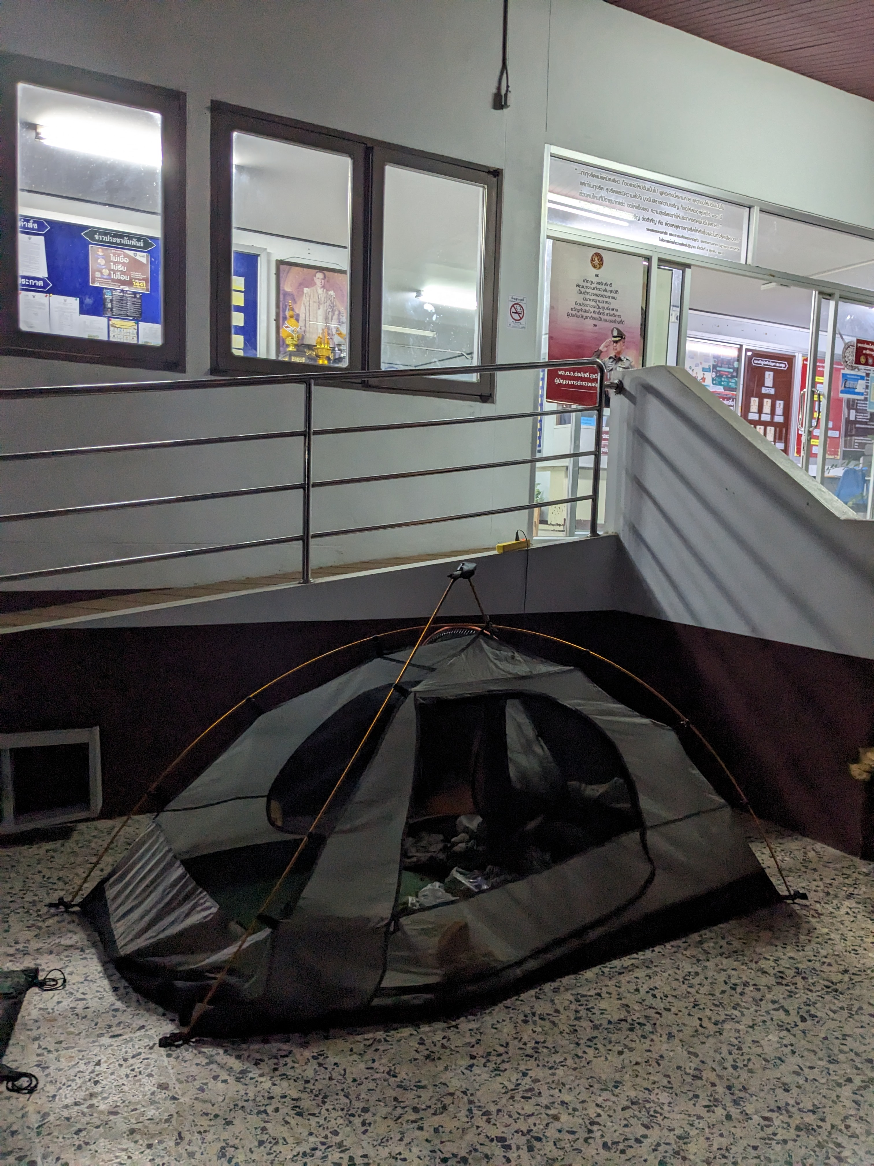 For my final two nights, I stayed at temples. Nearing the Malaysian border, there were fewer temples with the majority of people being Muslim. It felt like the few temples often got cyclists visiting and quickly gave me a place to camp. For my final night, I was greeted by some Thai military at the temple who kindly shared their meal with me and enjoyed watching as I tried to eat their spicy food.